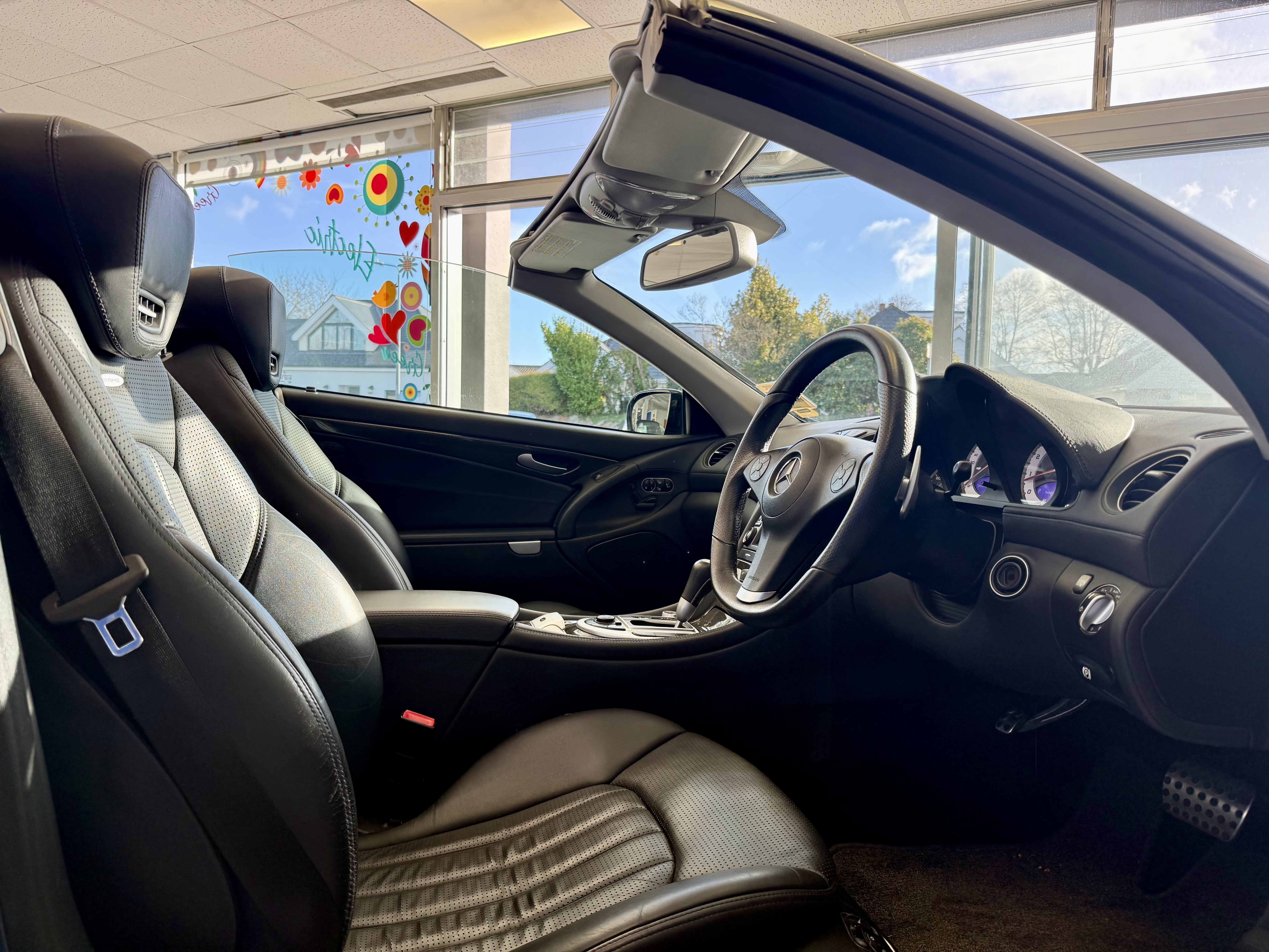 Inside, the cabin is a showcase of Mercedes luxury: premium leather upholstery, heated and ventilated seats, COMAND navigation, and AMG-specific detailing throughout. The retractable hardtop roof transforms the SL63 from a refined coupé into an open-air roadster at the touch of a button, making it as versatile as it is exhilarating.