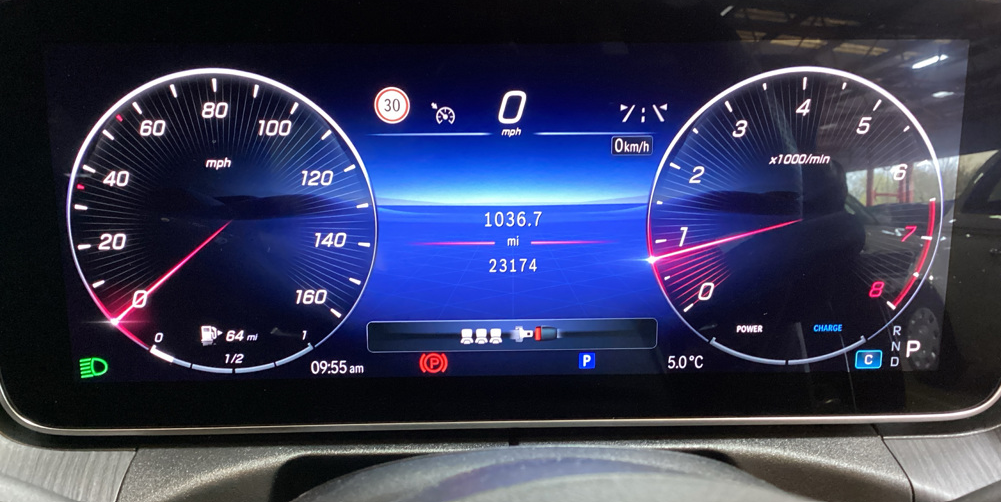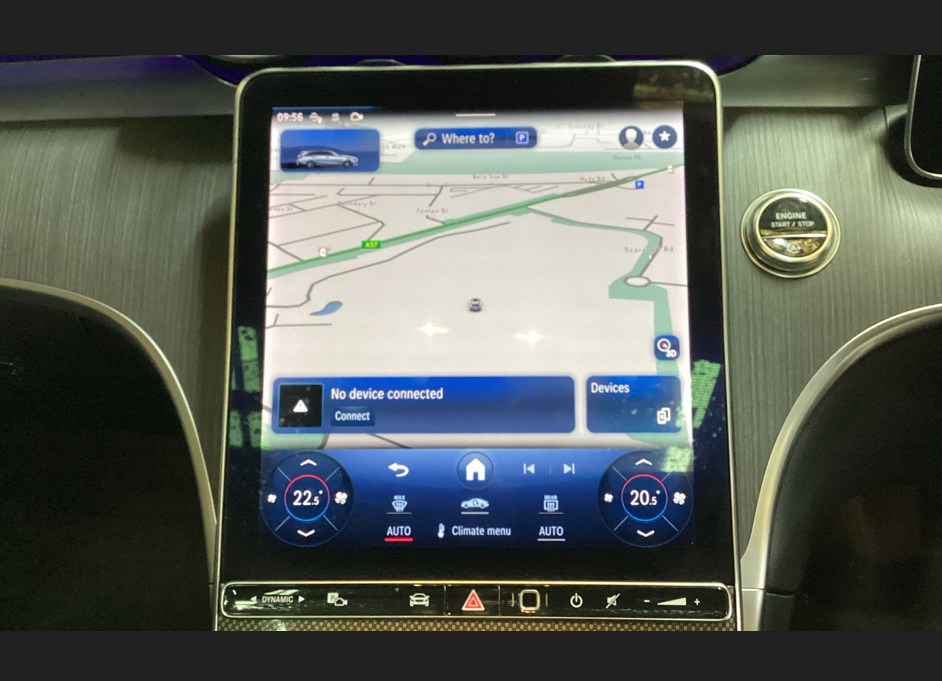 As this is the range-topping model specification is very generous including the new centrally mounted MBUX driver/infotainment system providing high end navigation, Heads-up display, Apple CarPlay, full floating dash, electric front seats ( heated) and with memory function and the hugely important Panoramic glass roof.