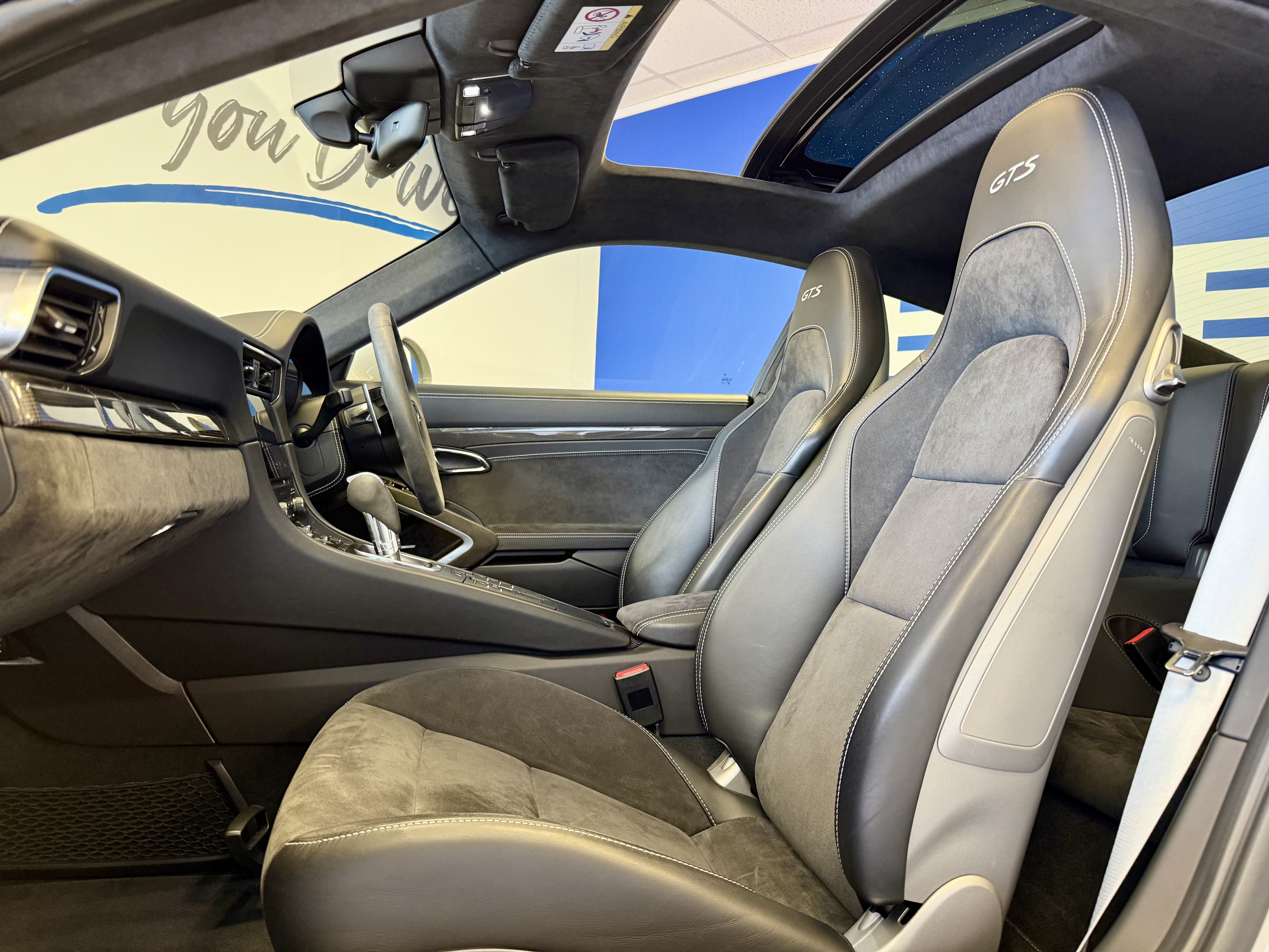 Finished in Elegant Crayon Grey, This GTS Coupe is paired with a beautifully sppointed GTS Interior, featuring leather and Alcantara throughout, creating an environment that feels both sporting and refined. The cabin is lifted further by thoughtful detailing, including silver instrument dials, leather wrapped instrument surrounds, GTS stitched monogrammed headrests, and a leather trimmed steering column casing, all contributing to a cockpit that feels purpose built and unmistakingly Porsche.