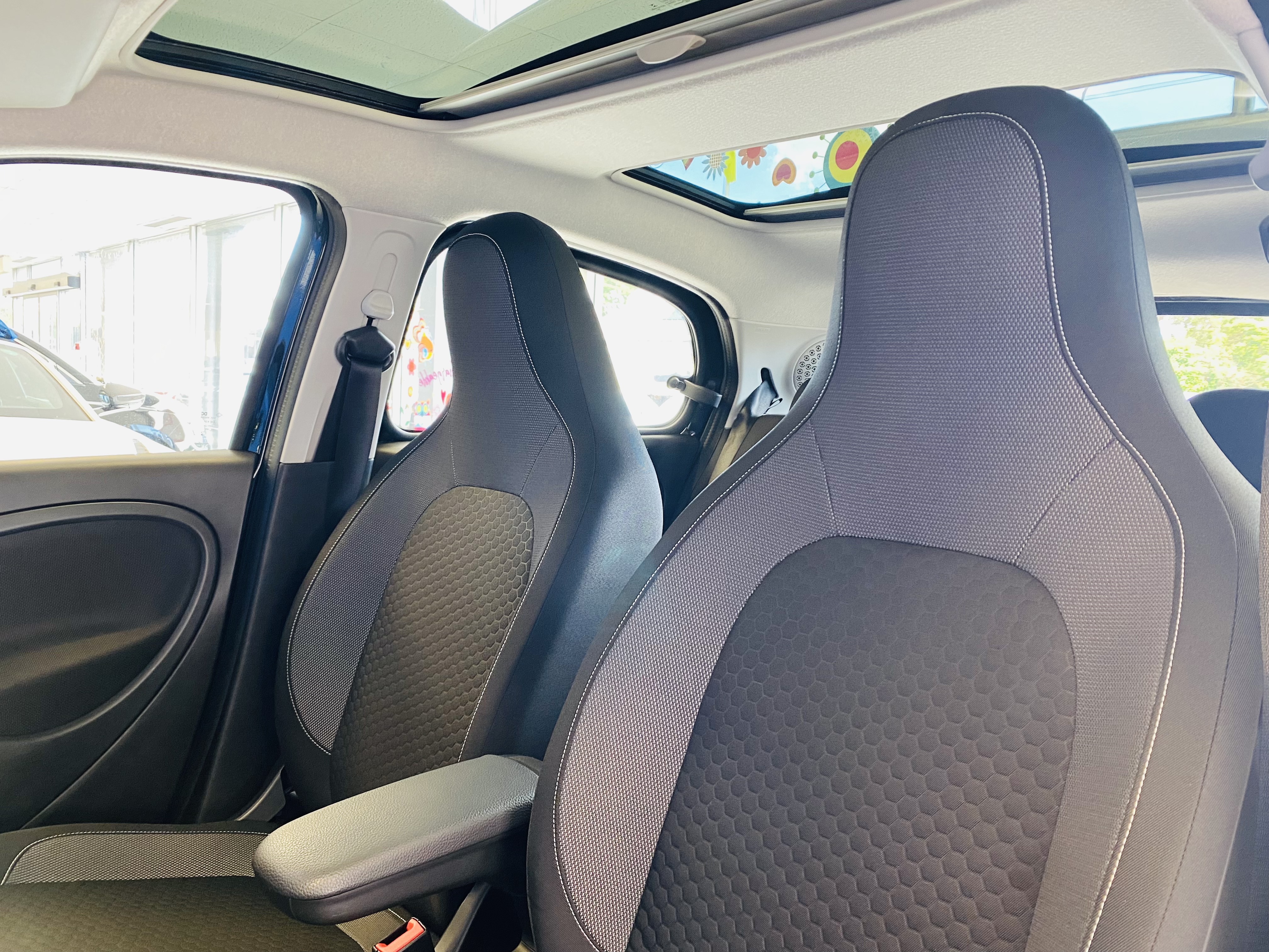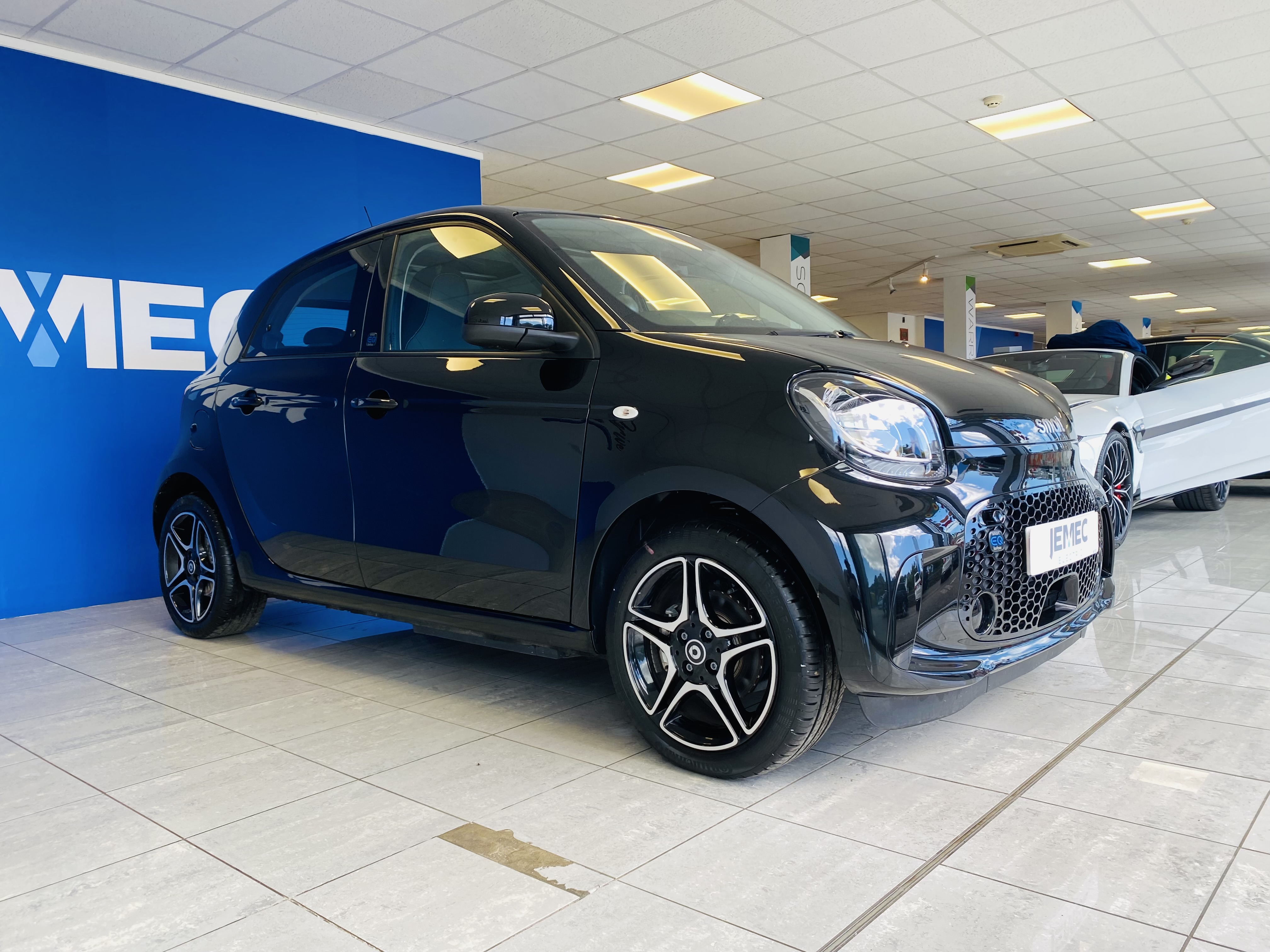 The Smart EQ offers you a familiar electric driving experience and hushes off the line with sufficient gusto. As this is the Premium model the interior feels very plush with the addition of a glass panoramic roof, bluetooth telephone, remote locking, heated front seats and super styling interior.